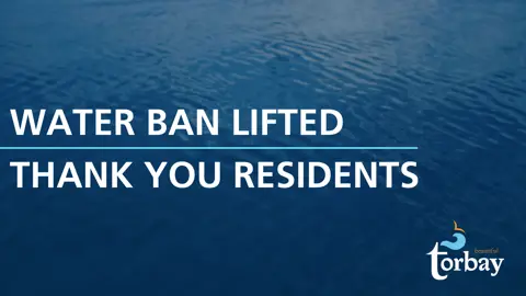 The Town of Torbay is pleased to announce that our Town water ban is being lifted effective immediately. Our water levels have improved and reached stable conditions through both pumping and water conservation efforts.